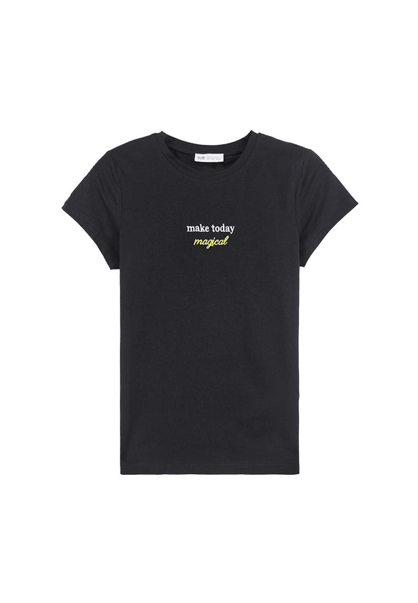 Women Short-Sleeve Fashion Tee - Black - 510174