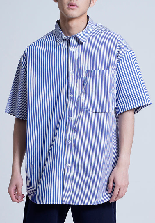 Men Oversized Short-Sleeve Shirt - Blue - H0M681