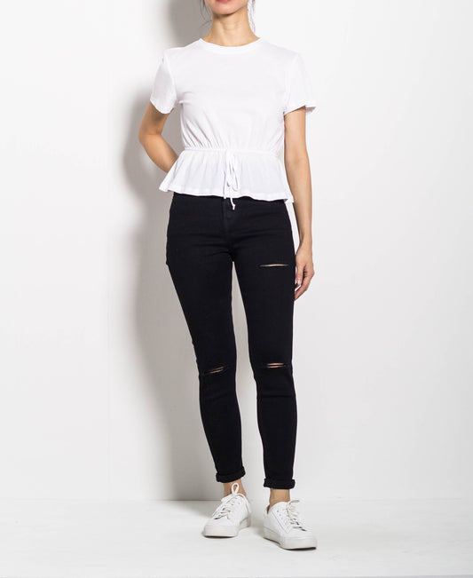 Women Peplum Short-Sleeve Blouse - White - H0W731
