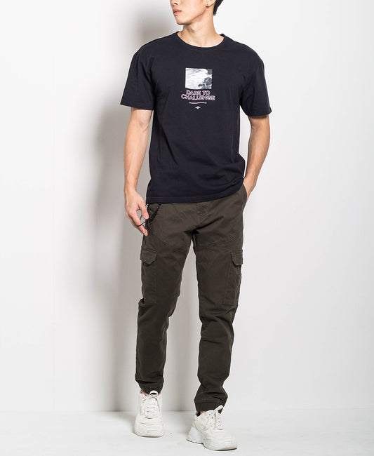 Men Oversized Short-Sleeve Sweatshirt Hoodie - Black - H0M680