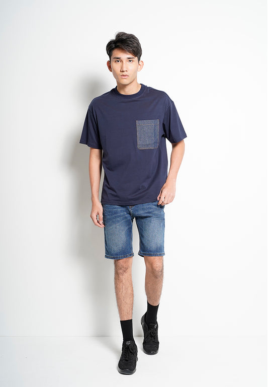 Men Short-Sleeve Woven Pocket Fashion Tee - Navy - H0M728