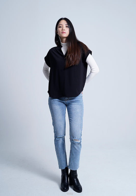 Women V-Neck Knit Top - Black - M0W658
