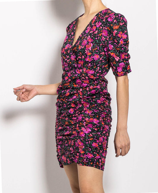 Women Floral Dress With Slit - Black - H0W712