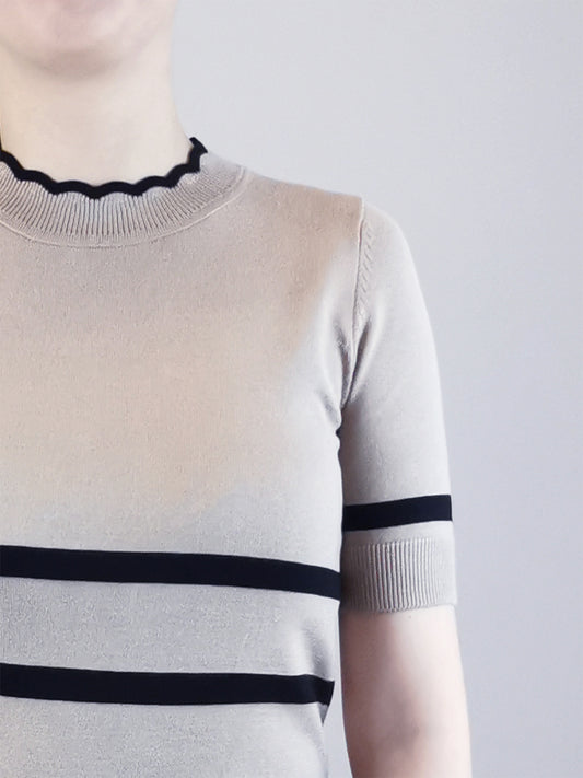 Women Striped Short Sleeve Knit Top - White - H0W929