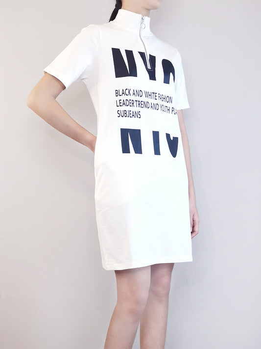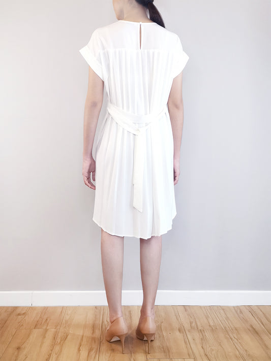 Women Pleated Detail Dress - White - M0W458