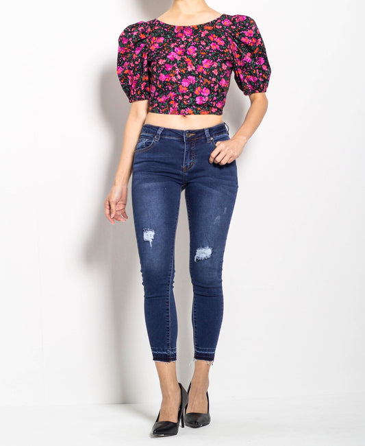 Women Peplum Short Sleeve Blouse - Black - H0W732