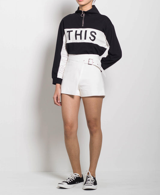 Women Short Sleeve Blouse With Shoulder Pads - White - H0W719