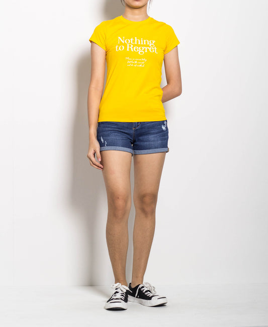Women Short Sleeve Slogan Tee - Yellow - H0W771