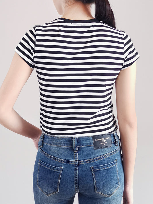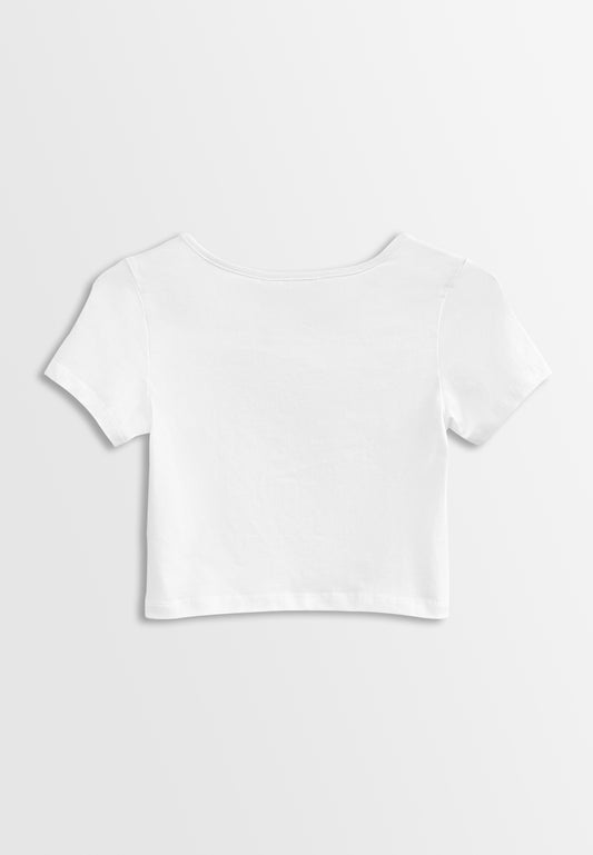 Women Short-Sleeve Crop Top Tee - White - H2W466