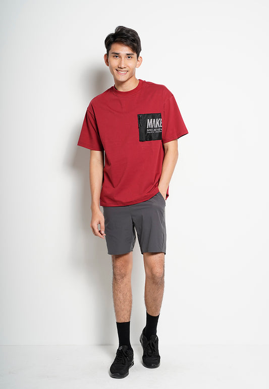 Men Oversized Short-Sleeve Fashion Round Tee - Dark Red - H0M726