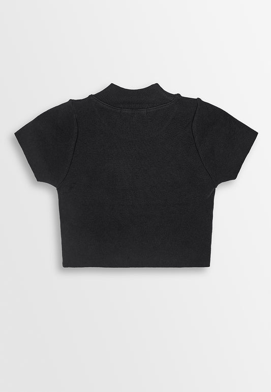 Women Short Sleeve Knit Crop Top - Black - 410237