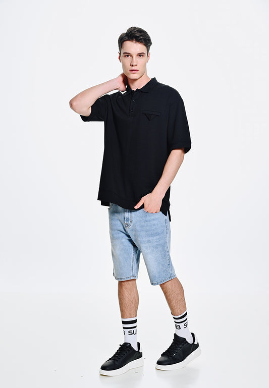 Men Short-Sleeve Oversized Polo Tee - Black - 310223