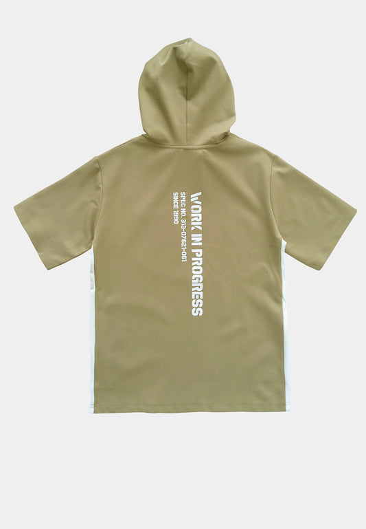 Men Short-Sleeve Sweatshirt Hoodie - Khaki - S2M258