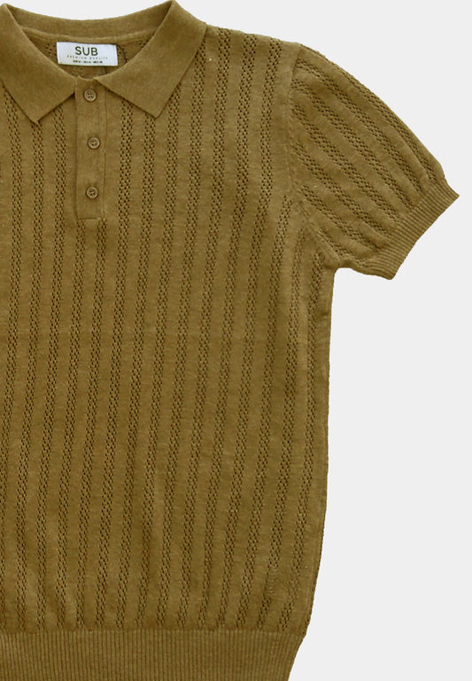 Men Short-Sleeve Knit Polo Tee - Khaki - H1M232