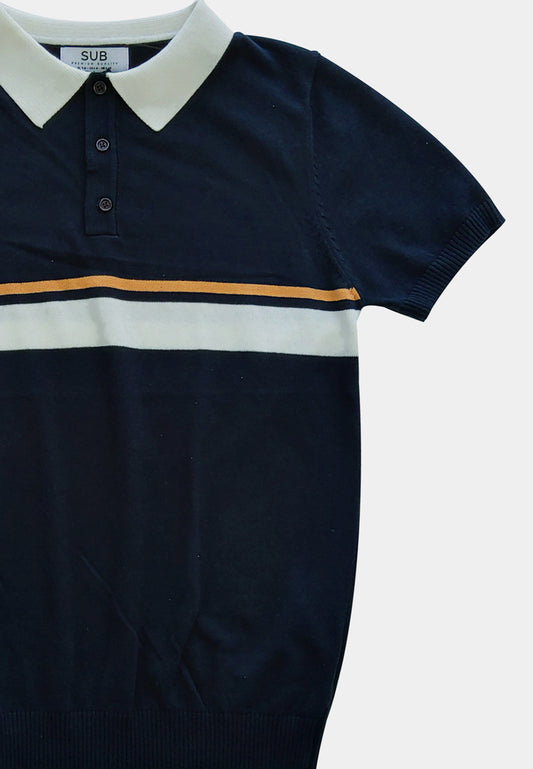 Men Short-Sleeve Knit Polo Tee - Dark Blue - H1M229