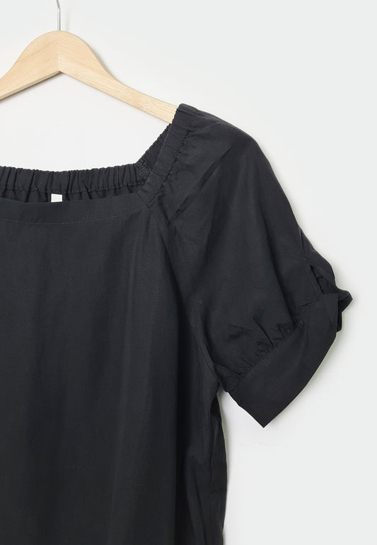 Women Woven Short-Sleeve Blouse - Black - M1W135