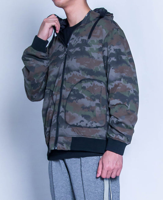 Men Reversible Hoodie Bomber Jacket - Black - H9M254