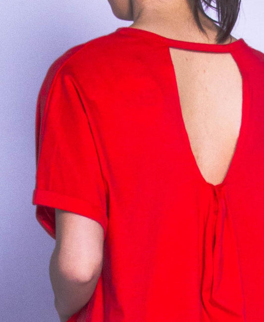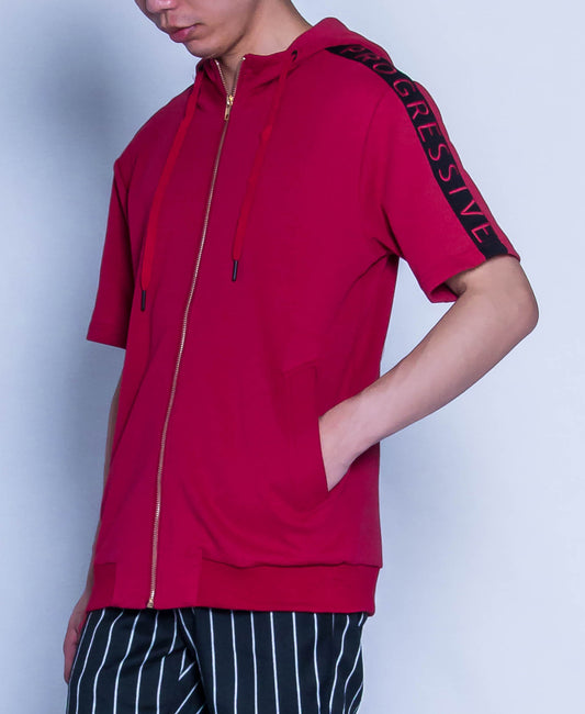 Men Cut & Sew Short-Sleeve Hoodie Top - Red - H9M366
