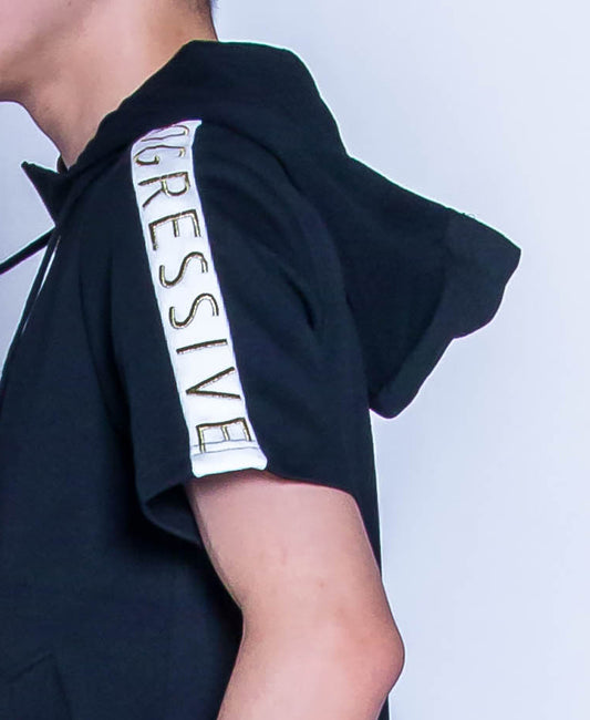 Men Cut & Sew Hoodie Short-Sleeve Top - Black - H9M367