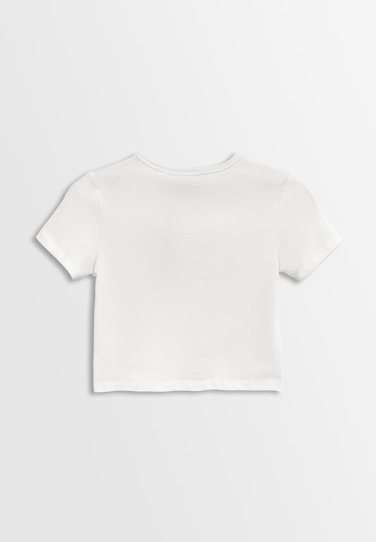 Women Short-Sleeve Crop Top Tee - White - H2W469