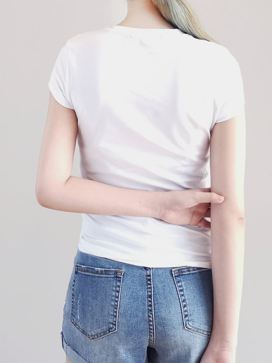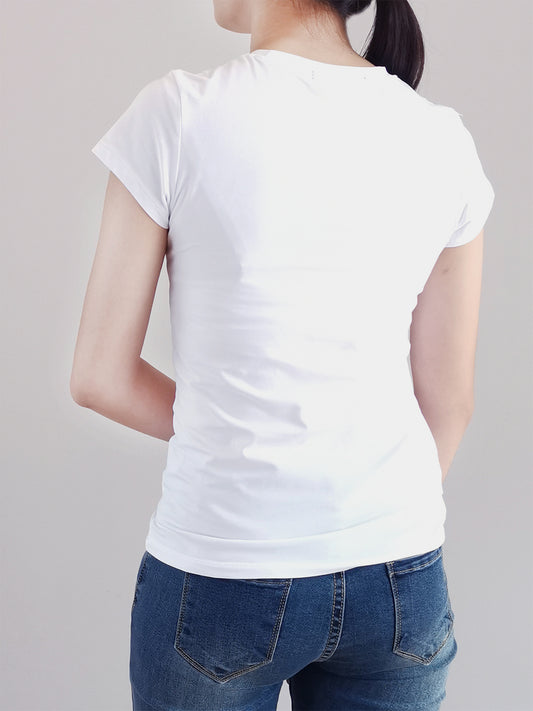 Women Short Sleeve Graphic Tee - White - H0W796