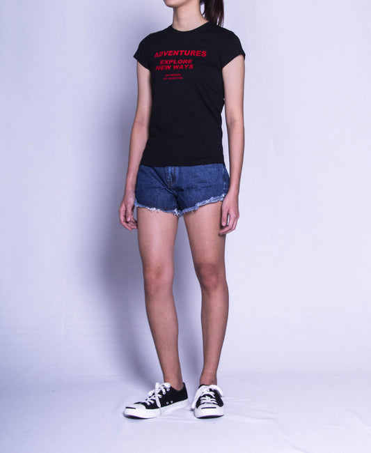 Women Short Sleeve Graphic Tee - Black - F9W212
