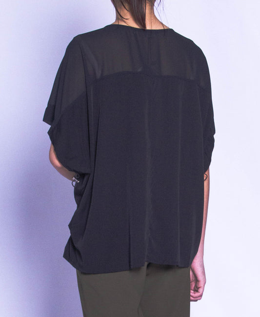 Women Short-Sleeve Blouse With Shoulder Pads - Black - H0W718