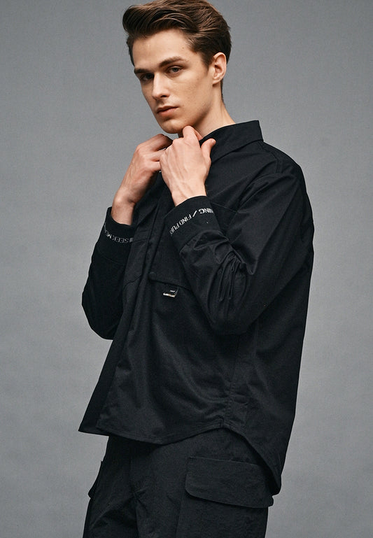 Men Oversized Long-Sleeve Shirt - Black - 410334