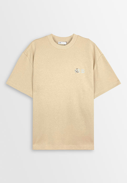 Men Oversized T-Shirt Short Sleeve - Khaki - 510038