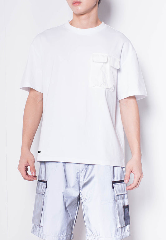 Men Short-Sleeve Woven Flap Pocket Fashion Tee - WHITE - H0M693