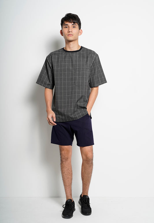 Men Short-Sleeve Woven Checked Fashion Tee - Dark Grey - H0M741