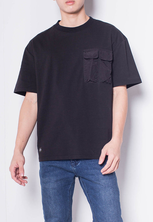 Men Short-Sleeve Woven Flap Pocket Fashion Tee - BLACK - H0M692