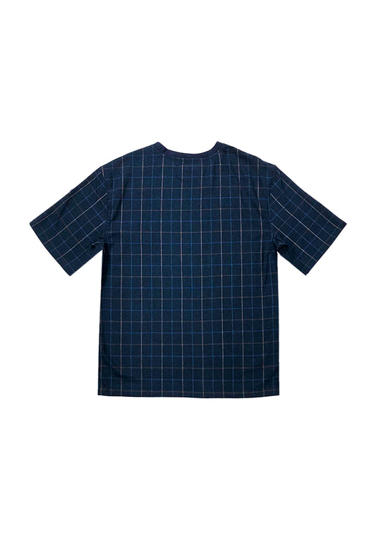 Men Short-Sleeve Woven Checked Fashion Tee - Navy - H0M743