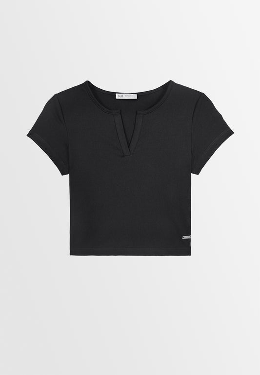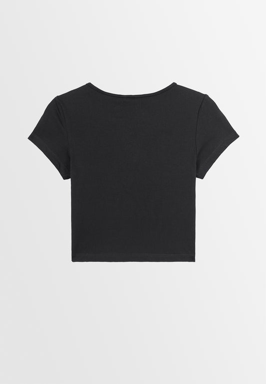 Women Short-Sleeve Crop Top Tee - Black - 410021