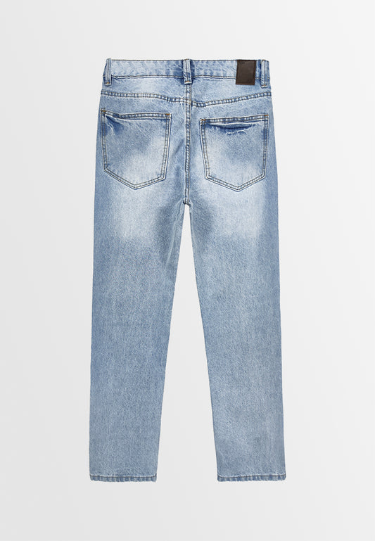 Women Straight Cut Long Jeans - Light Blue - 310238