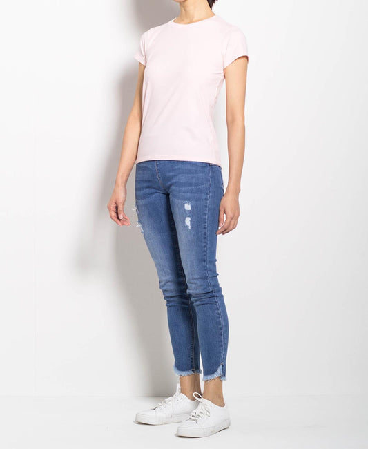 Women Short Sleeve Basic Tee - Light Pink - F0W711