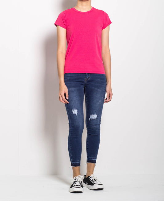 Women Short-Sleeve Basic Tee - Pink - F0W707