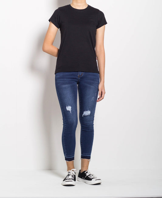 Women Short-Sleeve Basic Tee - Black - F0W708