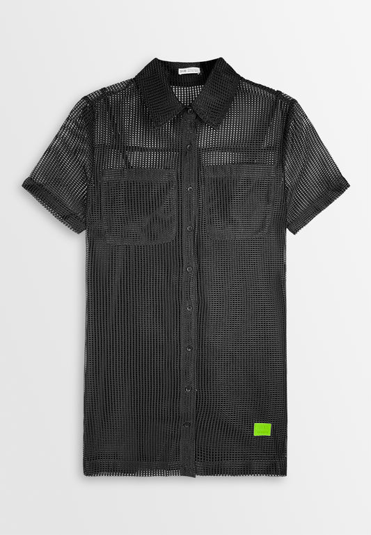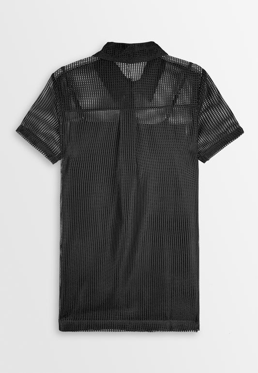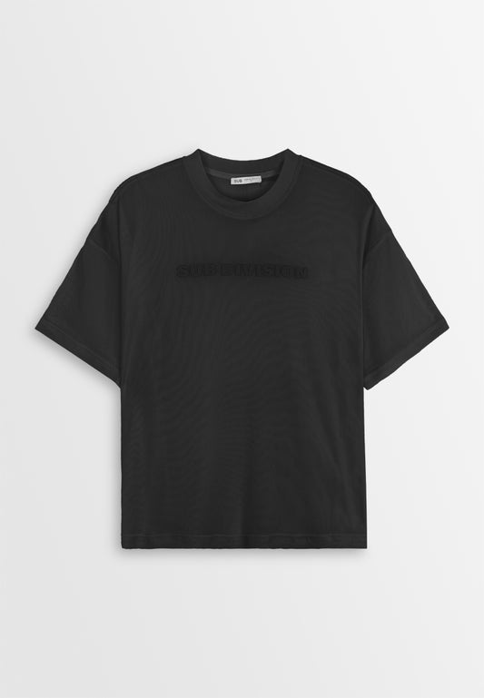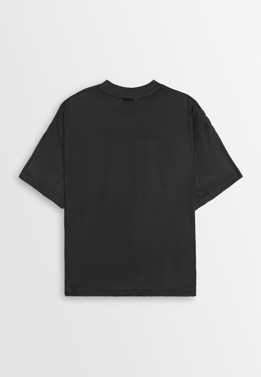 Women Oversized Sheer Mesh Fashion Tee - Black - 410269