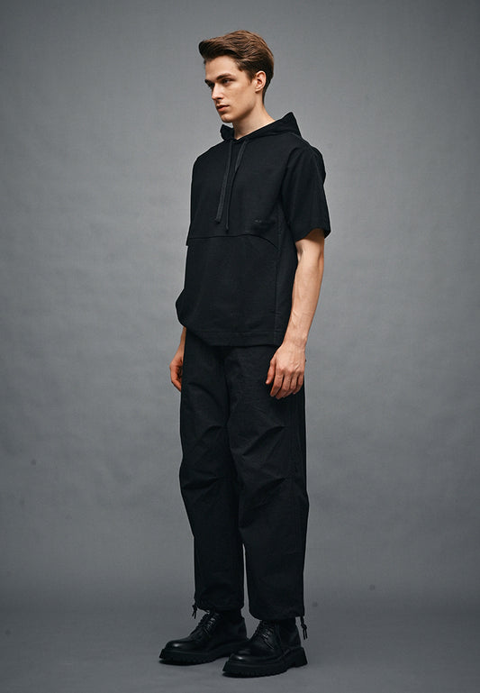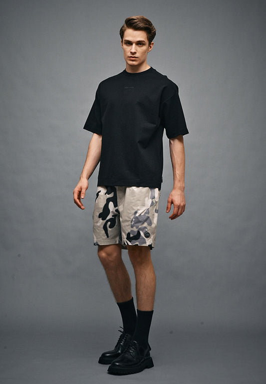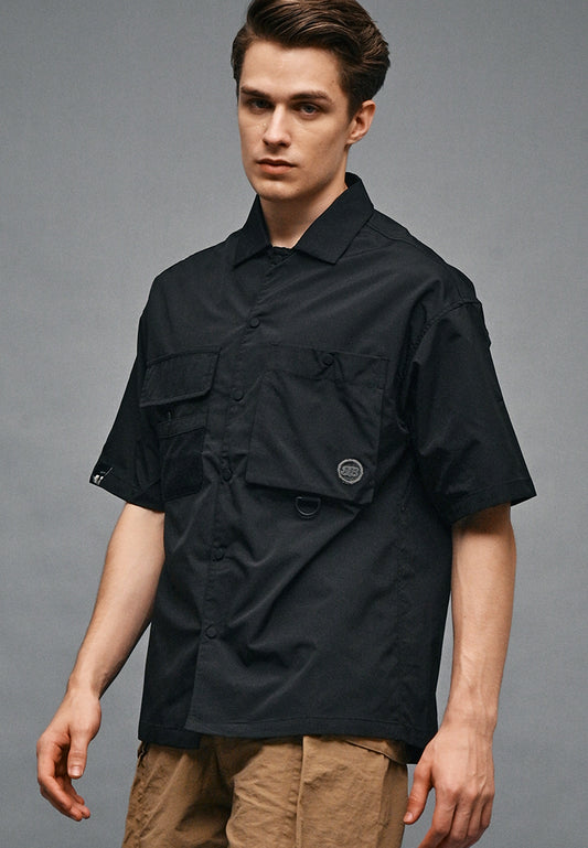 Men Oversized Short-Sleeve Shirt - Black - 410332