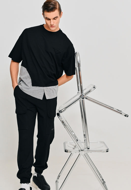 Men Oversized T-Shirt Short Sleeve - Black - 310172