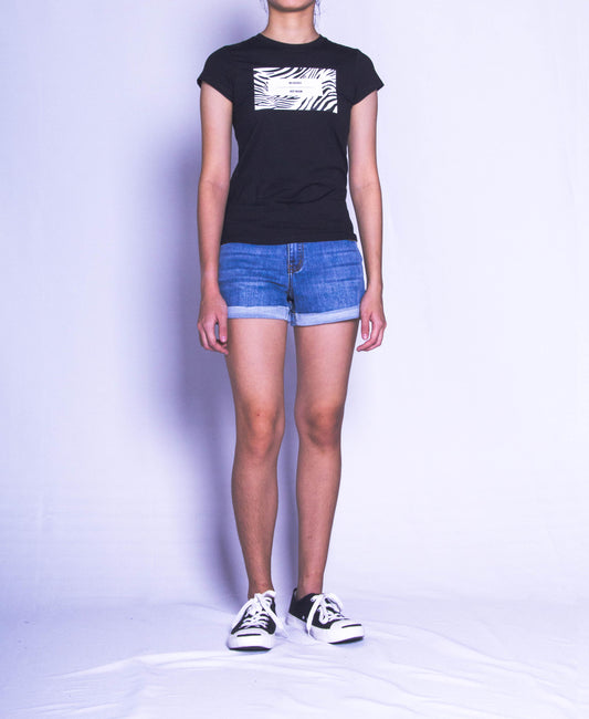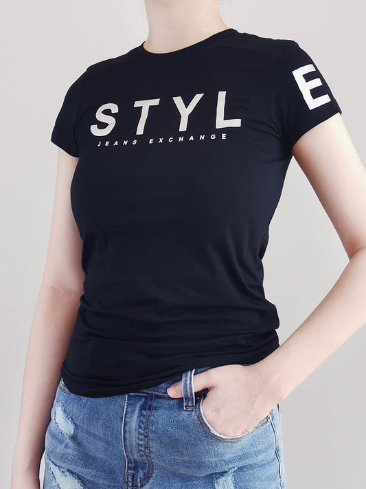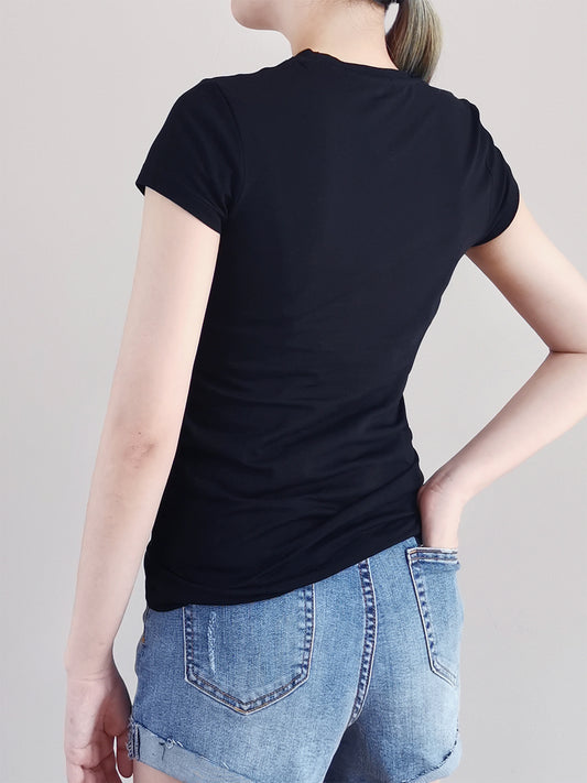 Women Short Sleeve Graphic Tee - Black - F9W212