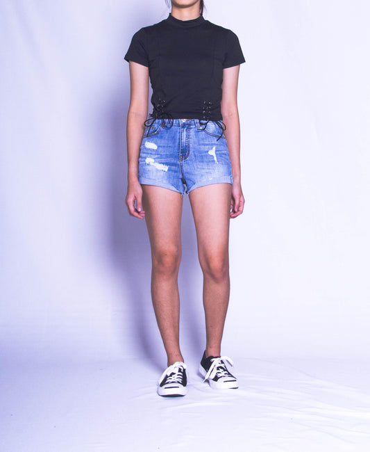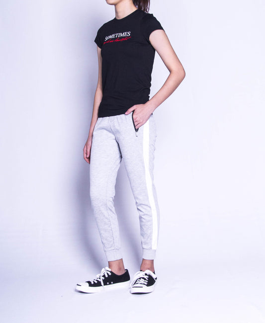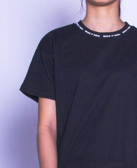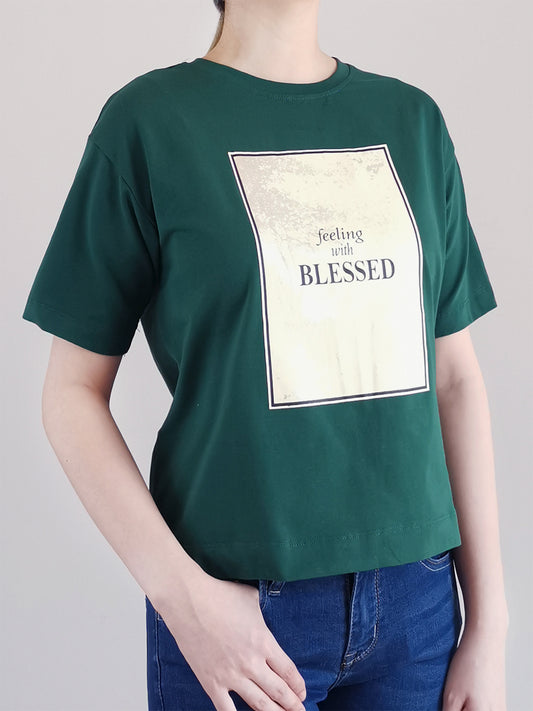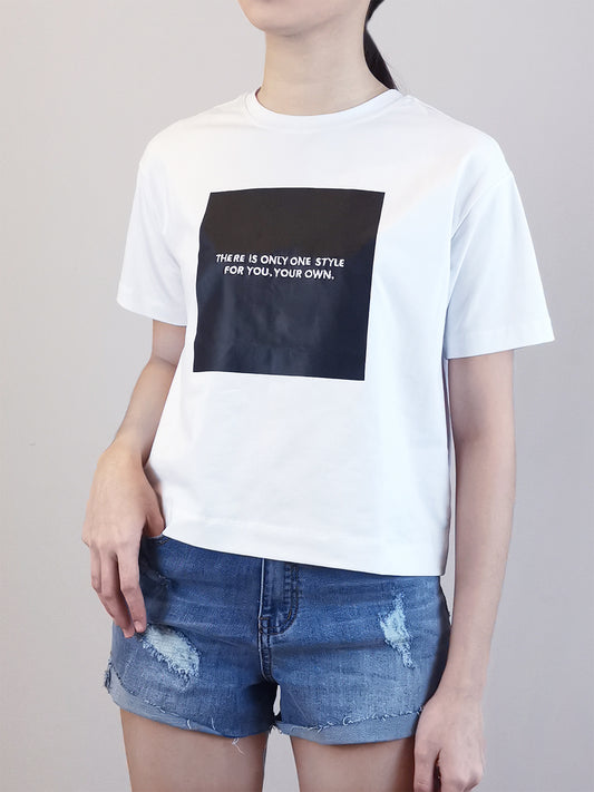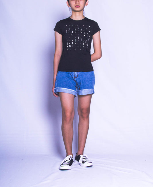 Women Short Sleeve Graphic Tee - Black - F9W204