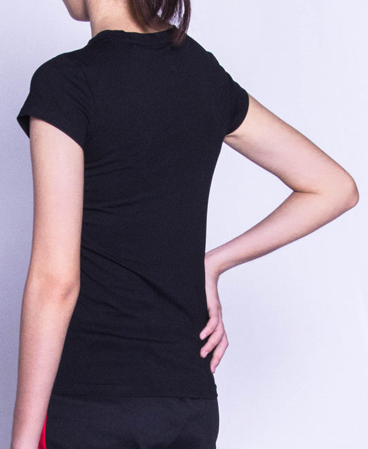 Women Short Sleeve Graphic Tee - Black - F9W192