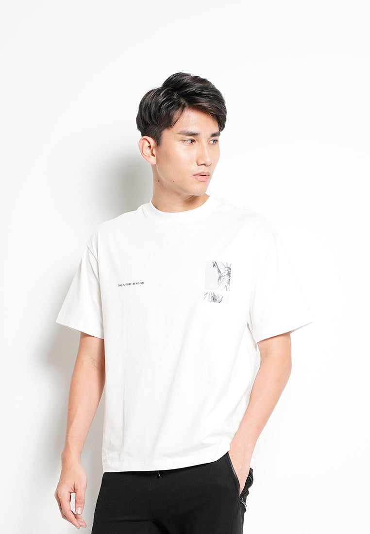 Men Oversized Short-Sleeve Graphic Tee - White - H0M732