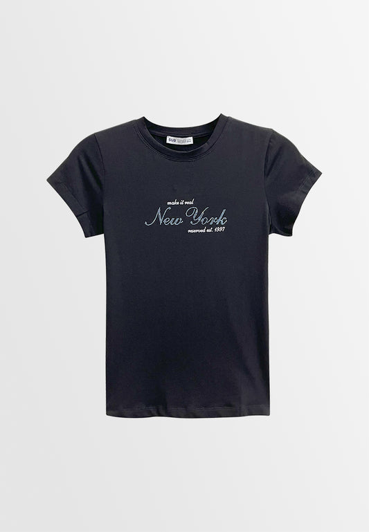 Women Short-Sleeve Graphic Tee - Black - M3W676