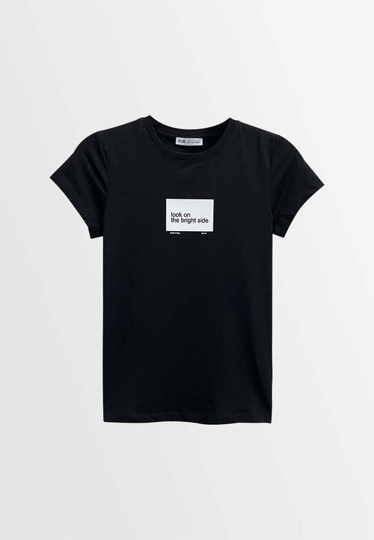 Women Short-Sleeve Fashion Tee - Black - M3W680