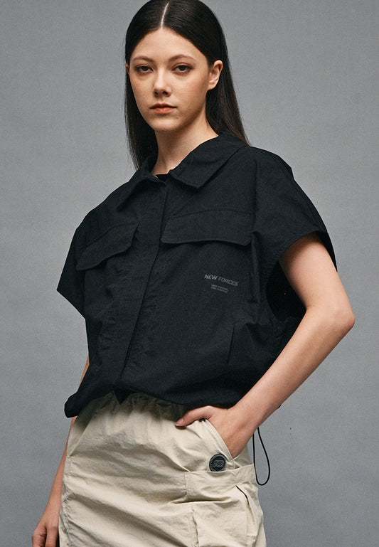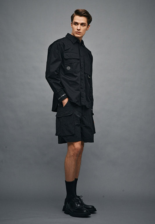 Men Oversized Short-Sleeve Shirt - Light Khaki - 410331