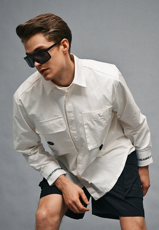 Men Oversized Long-Sleeve Shirt - White - 410333