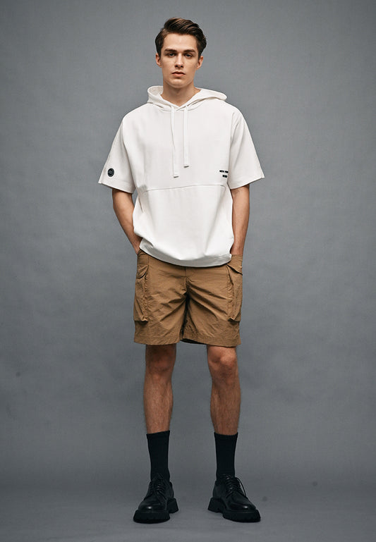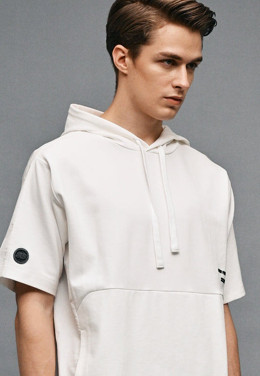 Men Short-Sleeve Oversized Sweatshirt Hoodie - White - 410329